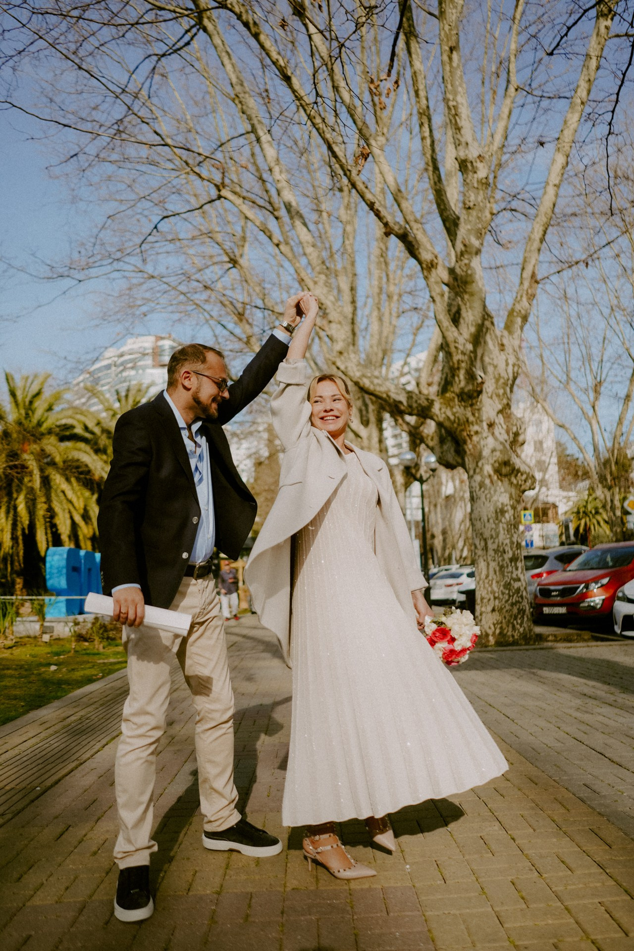 Загс, пальмы и море
